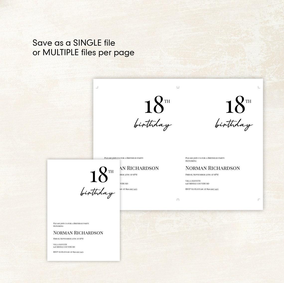18th Birthday Invitation Template 100% Editable Minimalist | Etsy
