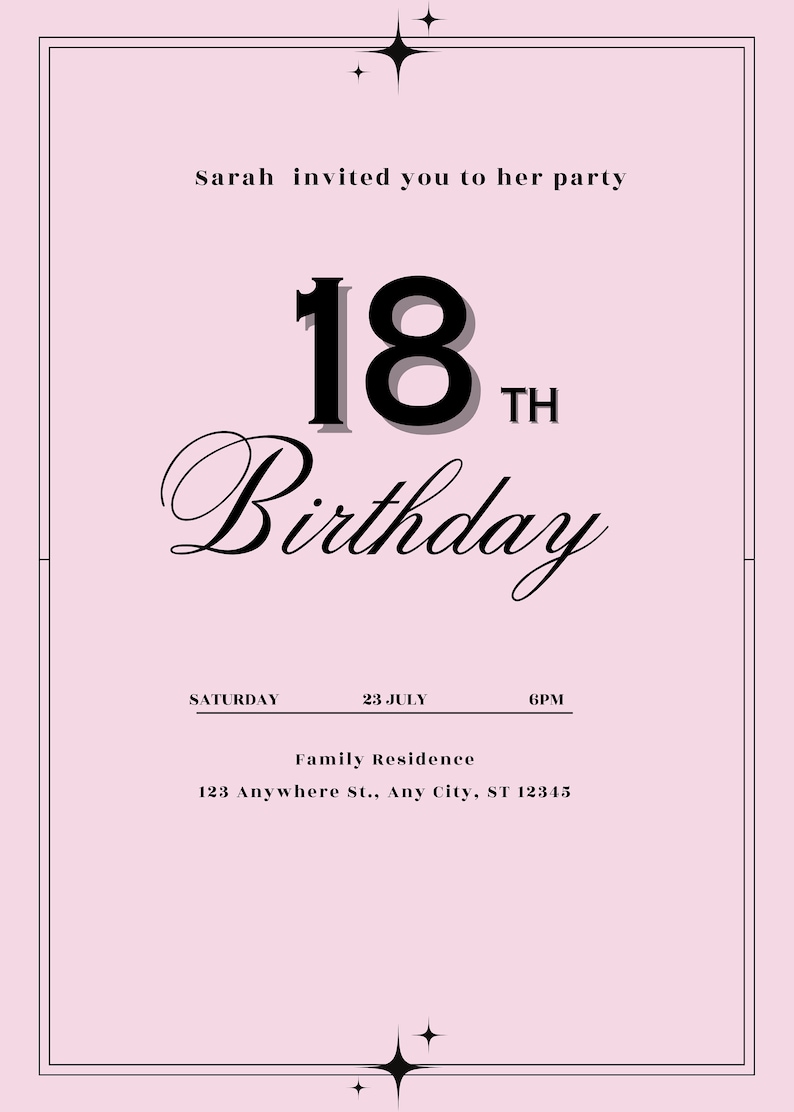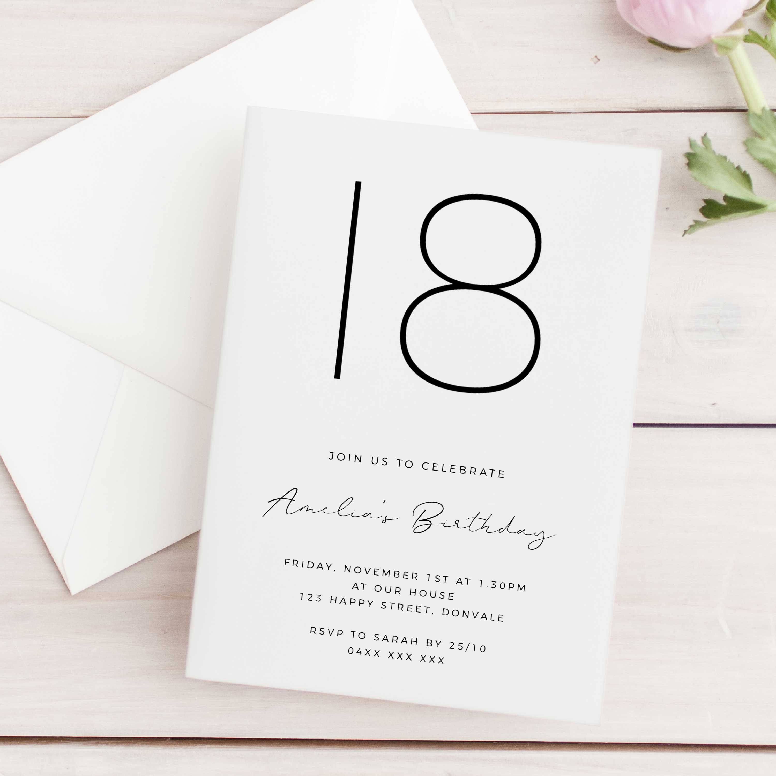18th Birthday Invitation Template, Editable Minimalist 18th Birthday ...