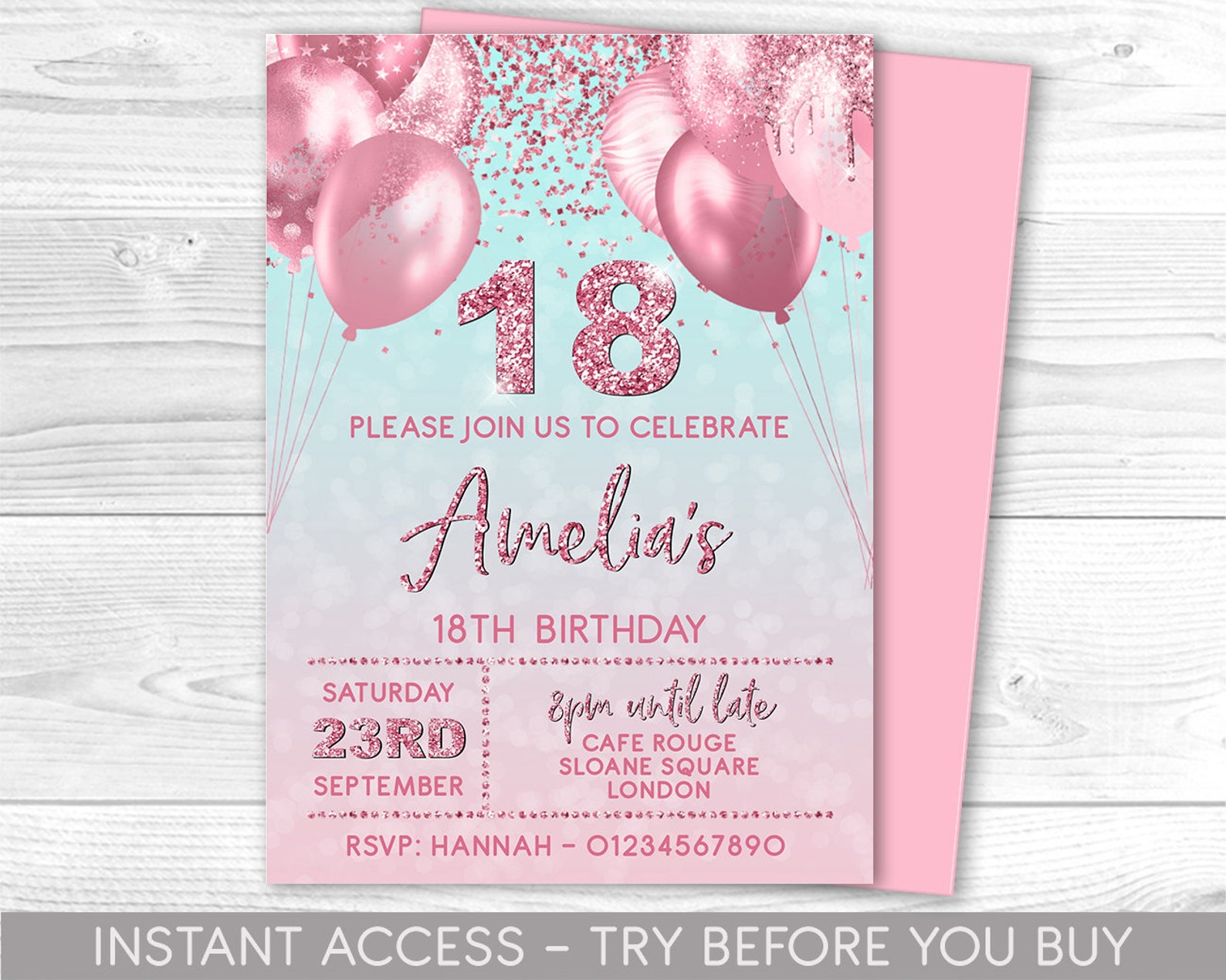 18th Birthday Invitation Digital, Editable Template, Invites for Teen ...