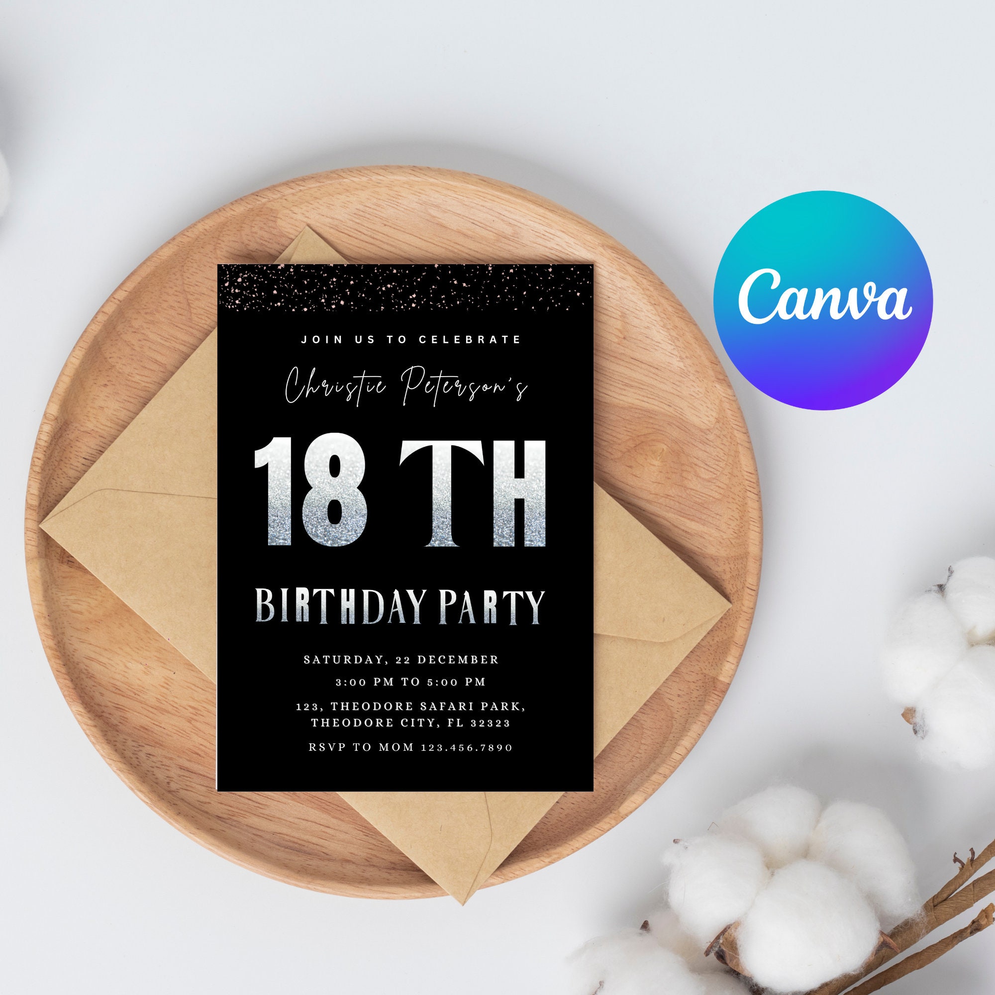 Editable 18th Birthday Invitation Printable Canva Template - Etsy Australia