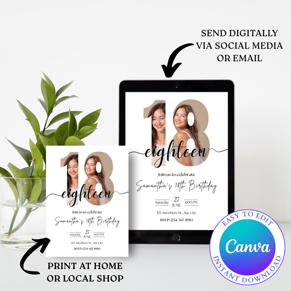 Editable 18th Birthday Photo Invitation Template Printable - Etsy Australia