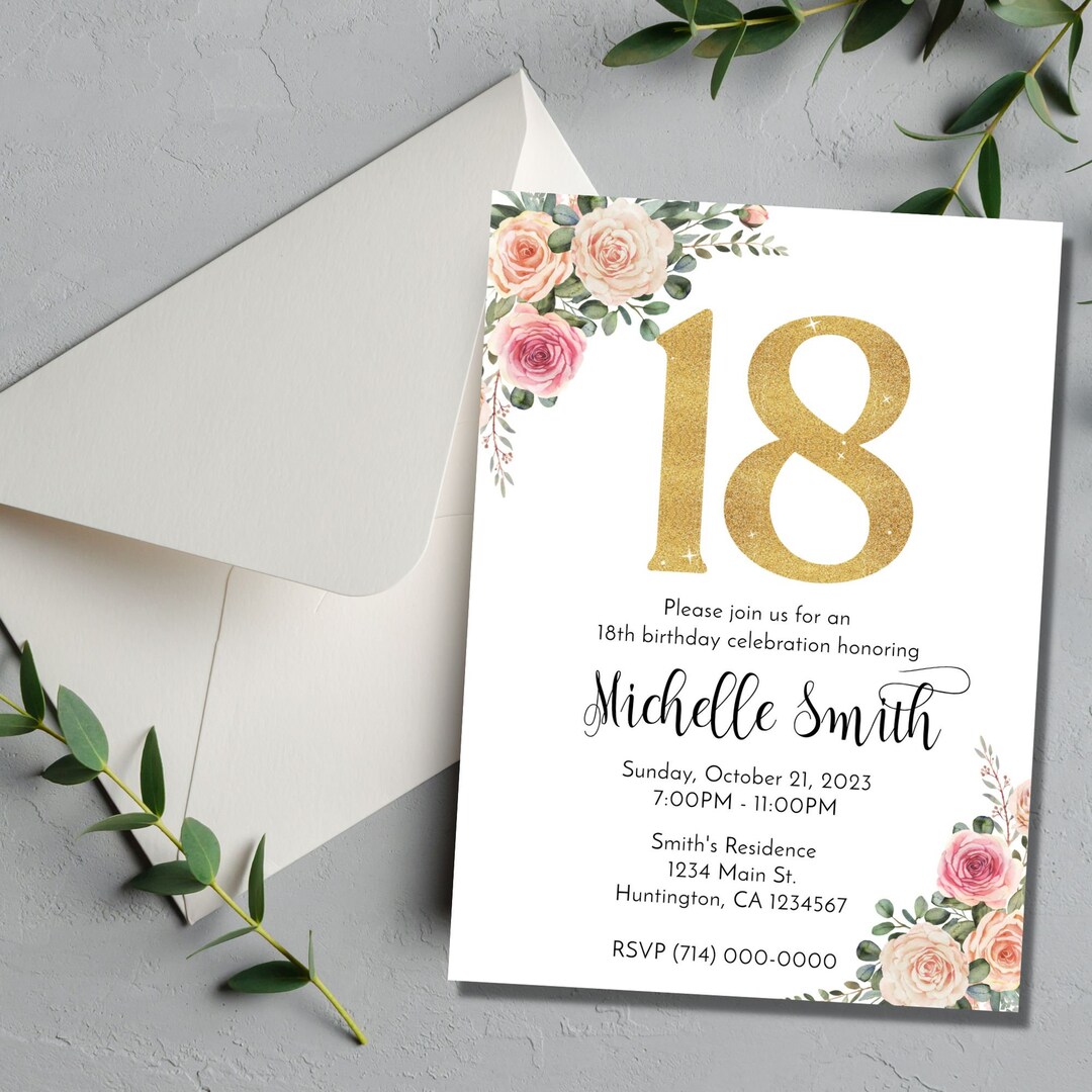 Floral 18th Birthday Invitation Template (digital Download) - Etsy