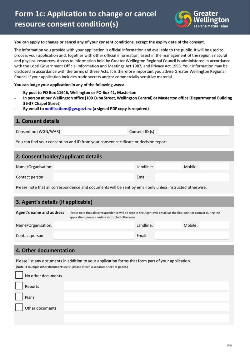 Form 1c Application to Change or Cancel Resource Consent Conditions ...