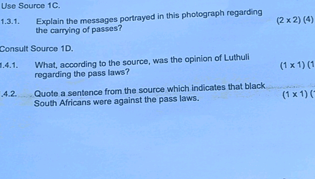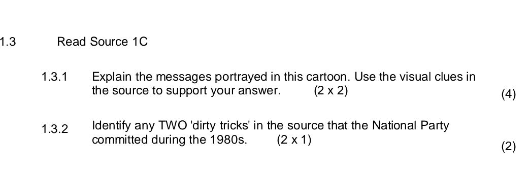 1.3 Consult Source 1C. 1.3.1 What message is portrayed in this photograp..