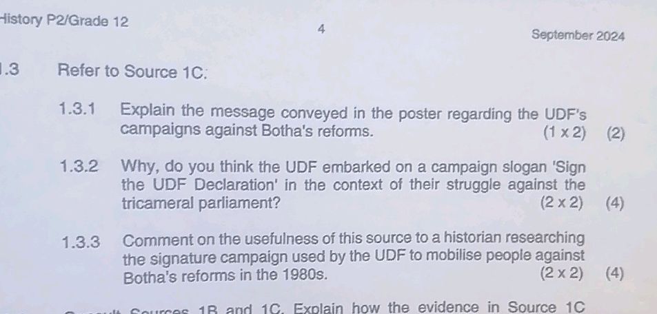Refer to Source 1C. 1.3.1 Explain the | StudyX