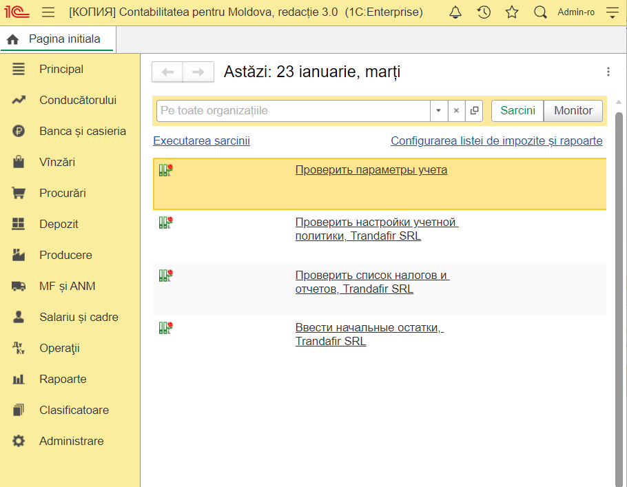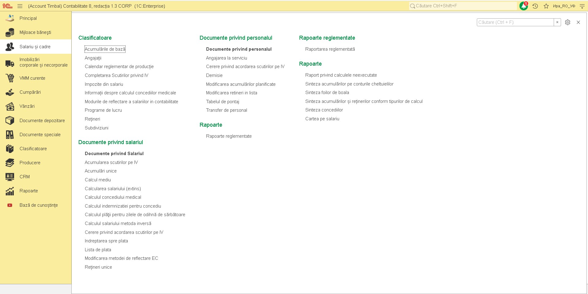 Interfața programului 1C