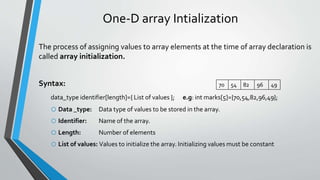 Declaration & Initialization of One Dimensional Array: - Smart Learning