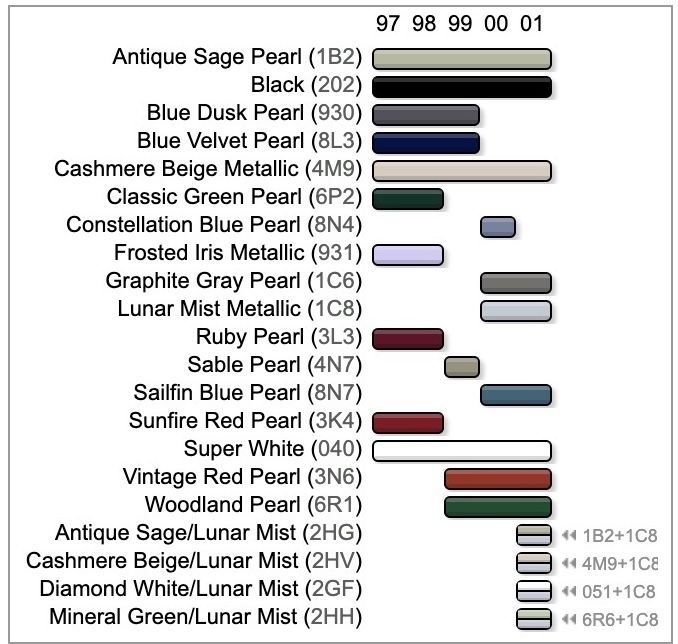 Toyota Camry Paint Charts Paint Codes & Color Charts