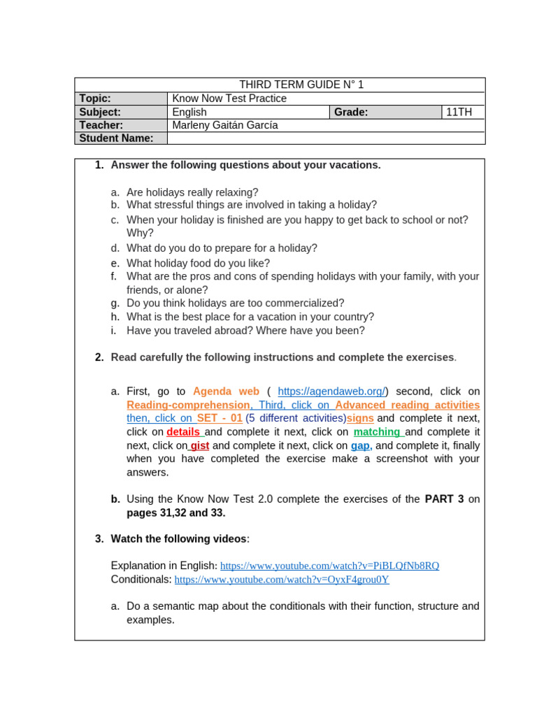 ENGLISH SELF STUDY GUIDE 11th GRADE III TERM | PDF | Human ...