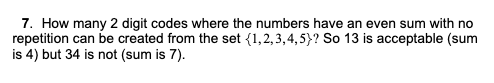 Solved 7. How many 2 digit codes where the numbers have an | Chegg.com