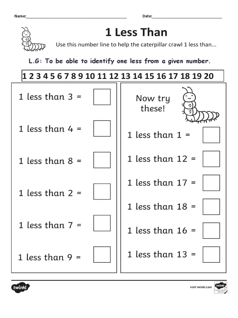 1 Less and Two Less Worksheet | PDF