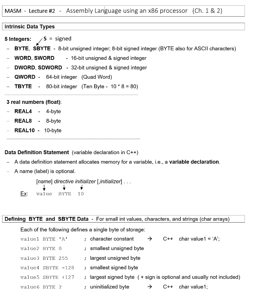 Solved MASM HW #1a Output a one byte integer Solution 1.) | Chegg.com