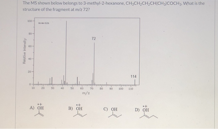 Solved The MS shown below belongs to 3-methyl-2-hexanone, | Chegg.com