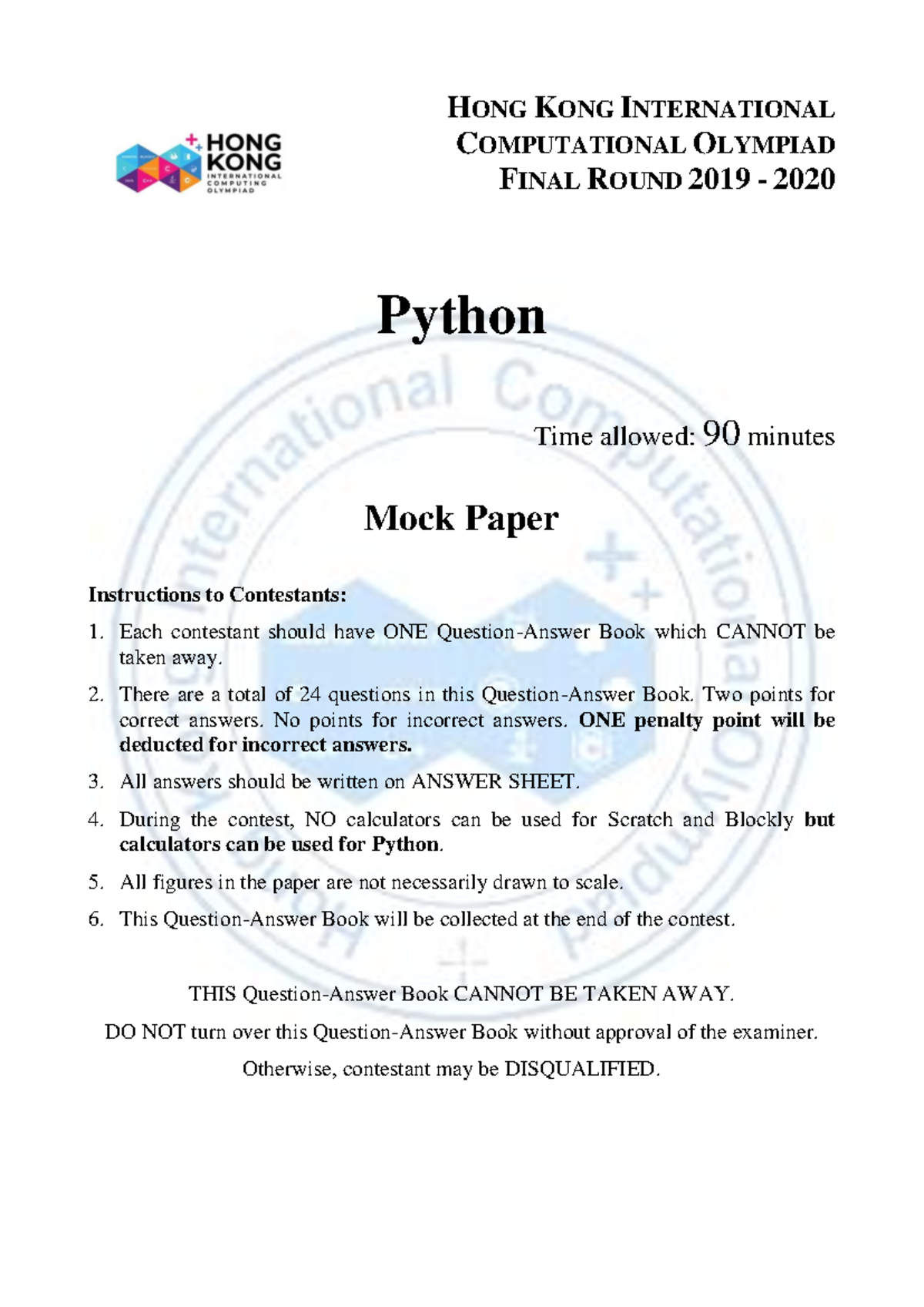 HKICO 2019-2020 Python Mock Exam Paper - Final Round - Studocu