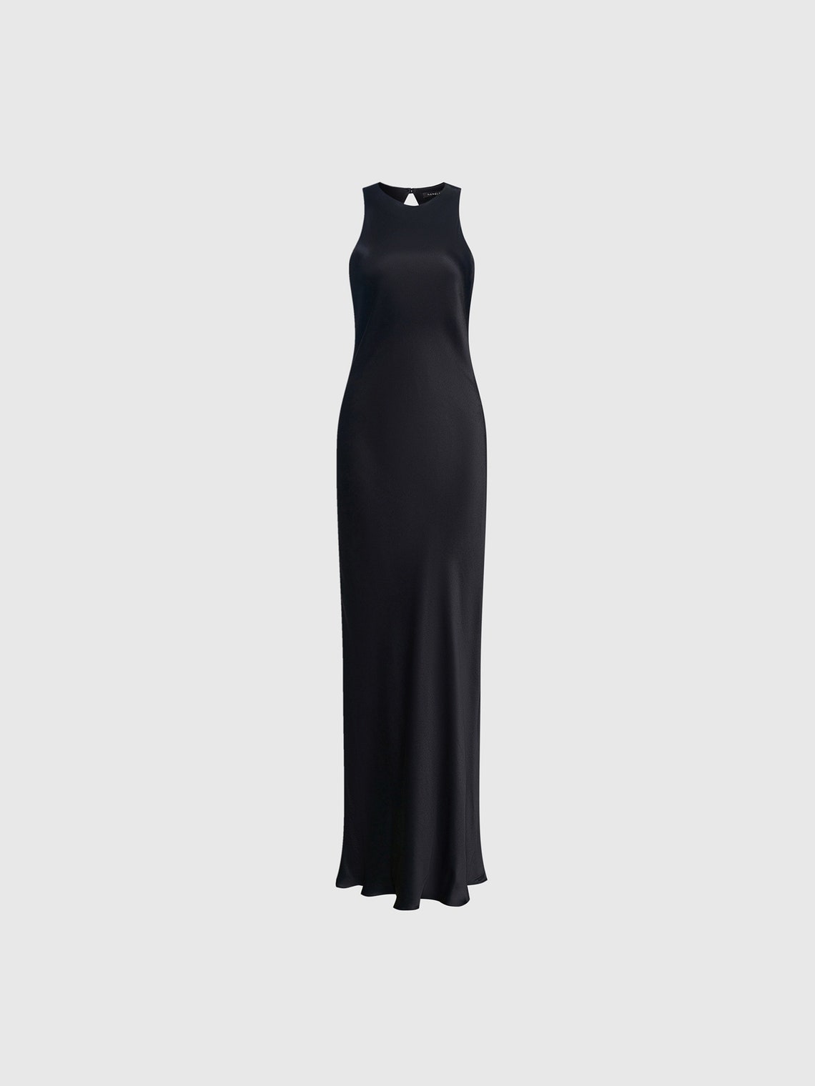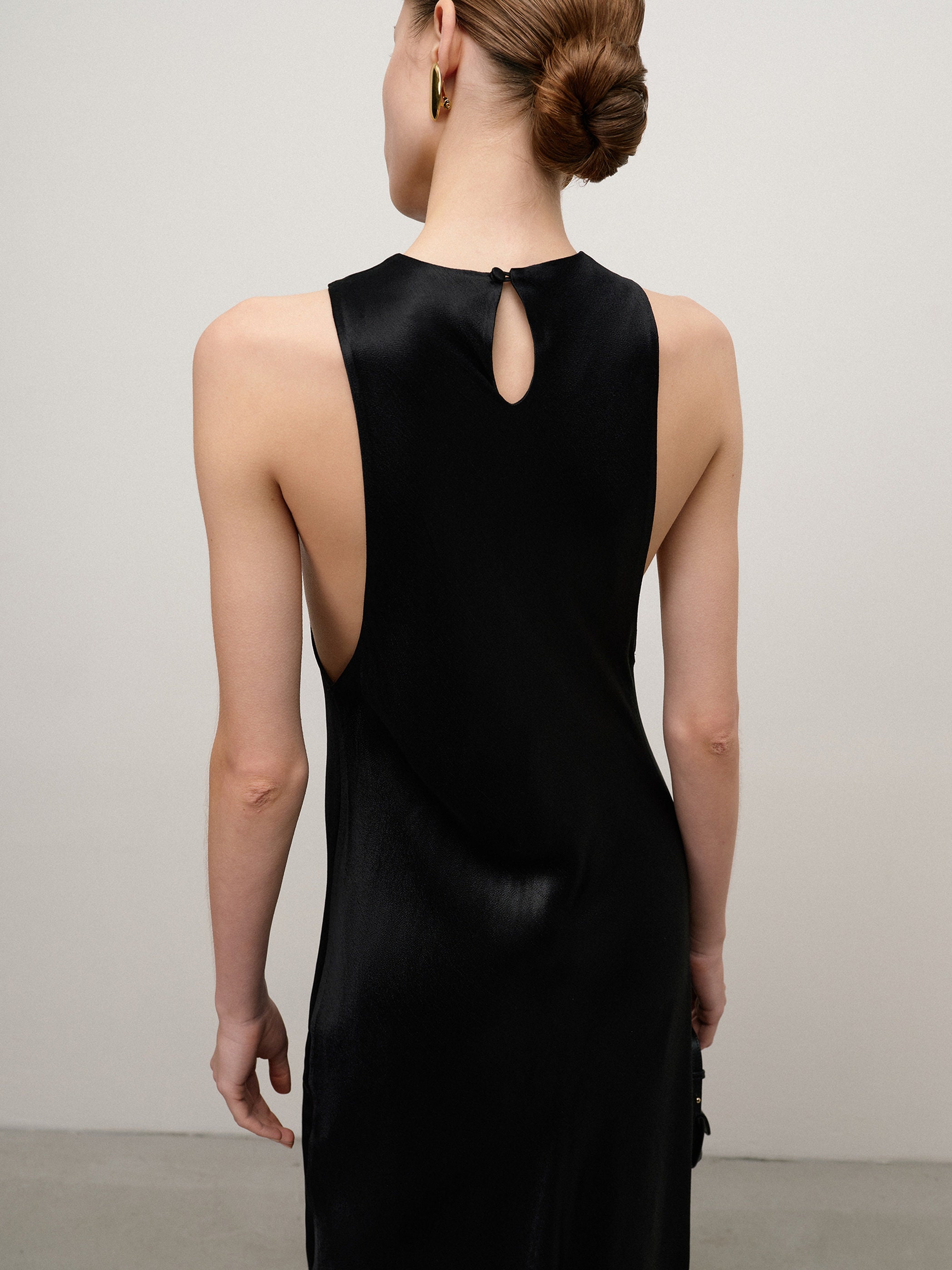 Black Python Satin Custom-made Floor Length Halter Neck Deep Deep Arm ...
