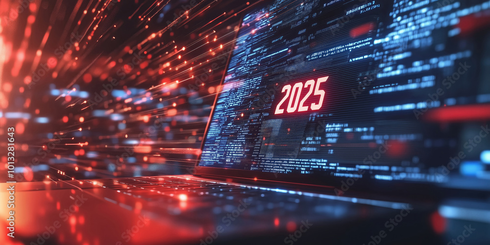 Computer screen with numbers 2025. Celebrating new year 2025 concept ...