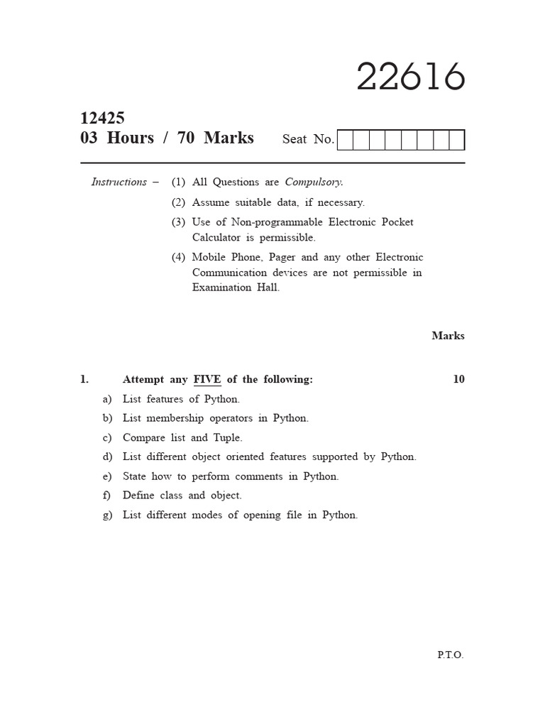 yT7QidiZBm - 22616 2025 Summer Question Paper | PDF | Python ...
