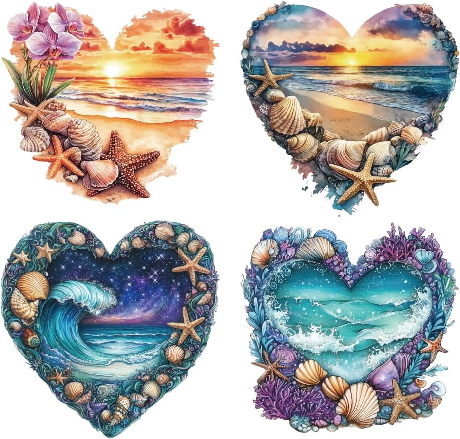 4Pcs 4 Styles Ocean Theme Plastic Heat Transfer Film Logo Stickers Set ...