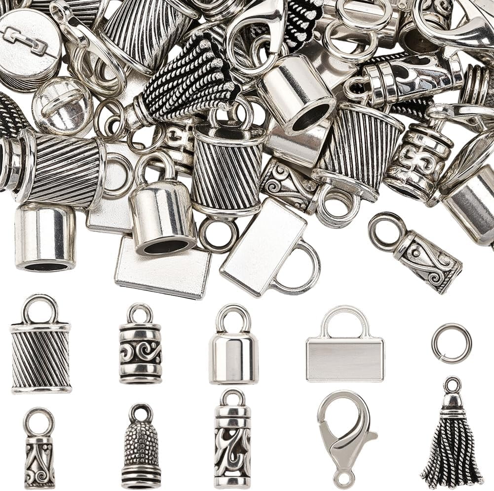 1 Box 230pcs Tassel End Caps Kumihimo Cord End Caps Alloy Metal Silver ...