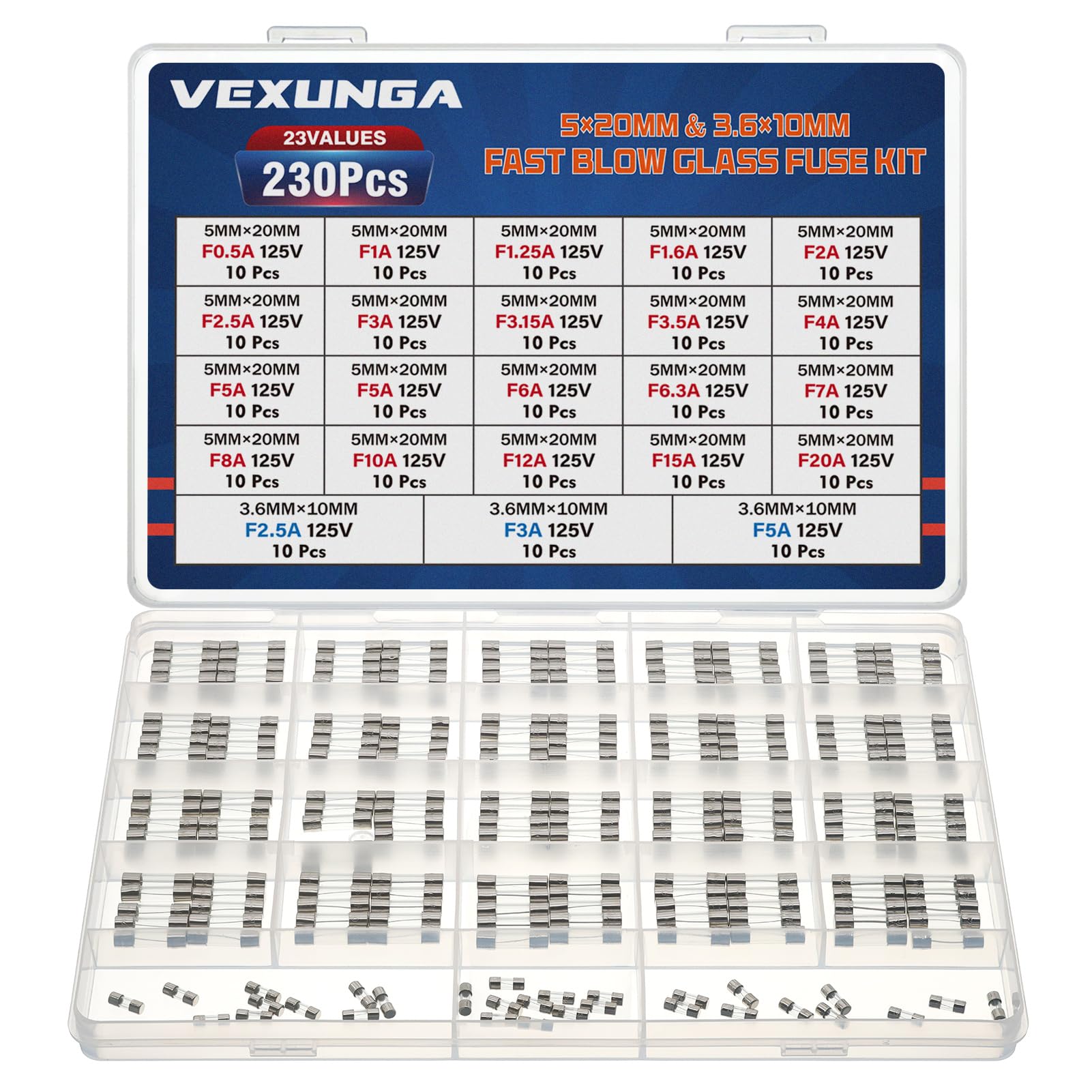 VEXUNGA 23Values 230pcs 125V Glass Fuses Kit 0.5A 1A 1.25A 1.6A 2A 2.5A ...
