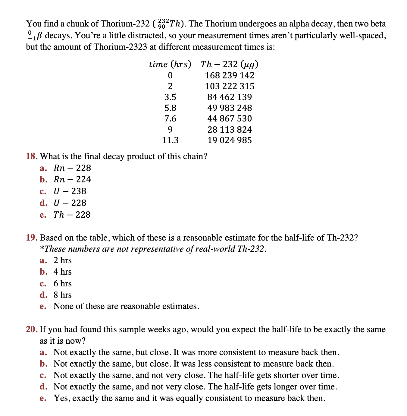 Solved You find a chunk of Thorium-232 (90232Th). The | Chegg.com