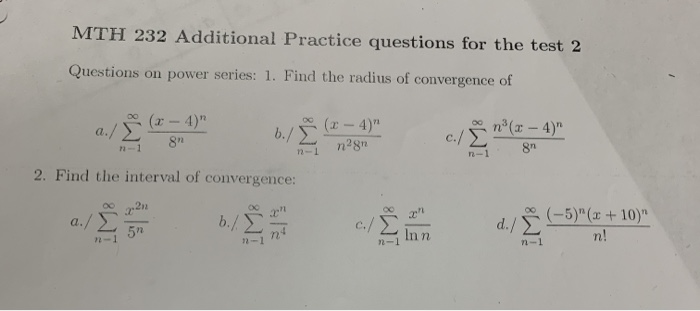 Solved MTH 232 Additional Practice questions for the test 2 | Chegg.com