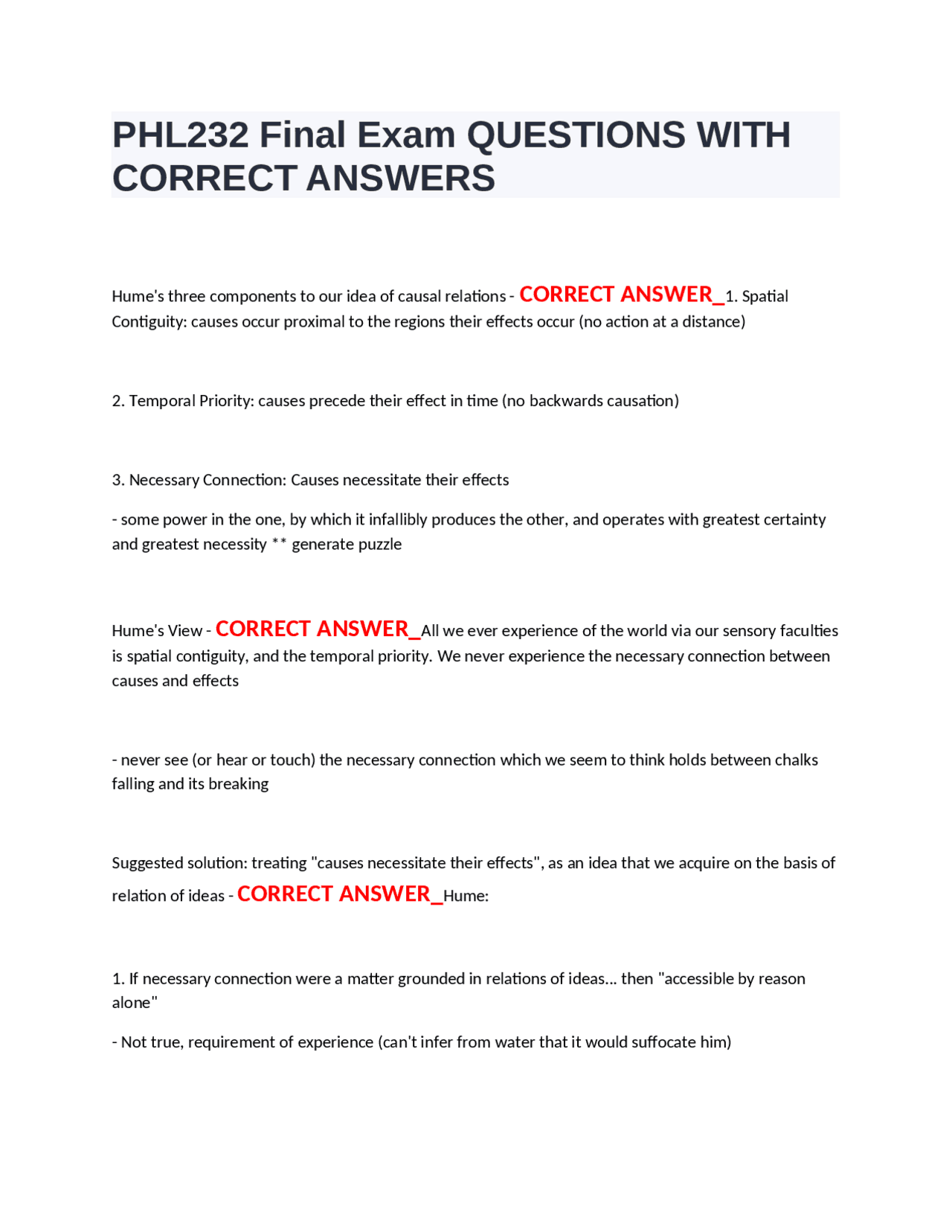 PHL232 Final Exam QUESTIONS WITH CORRECT ANSWERS | Exams Nursing | Docsity