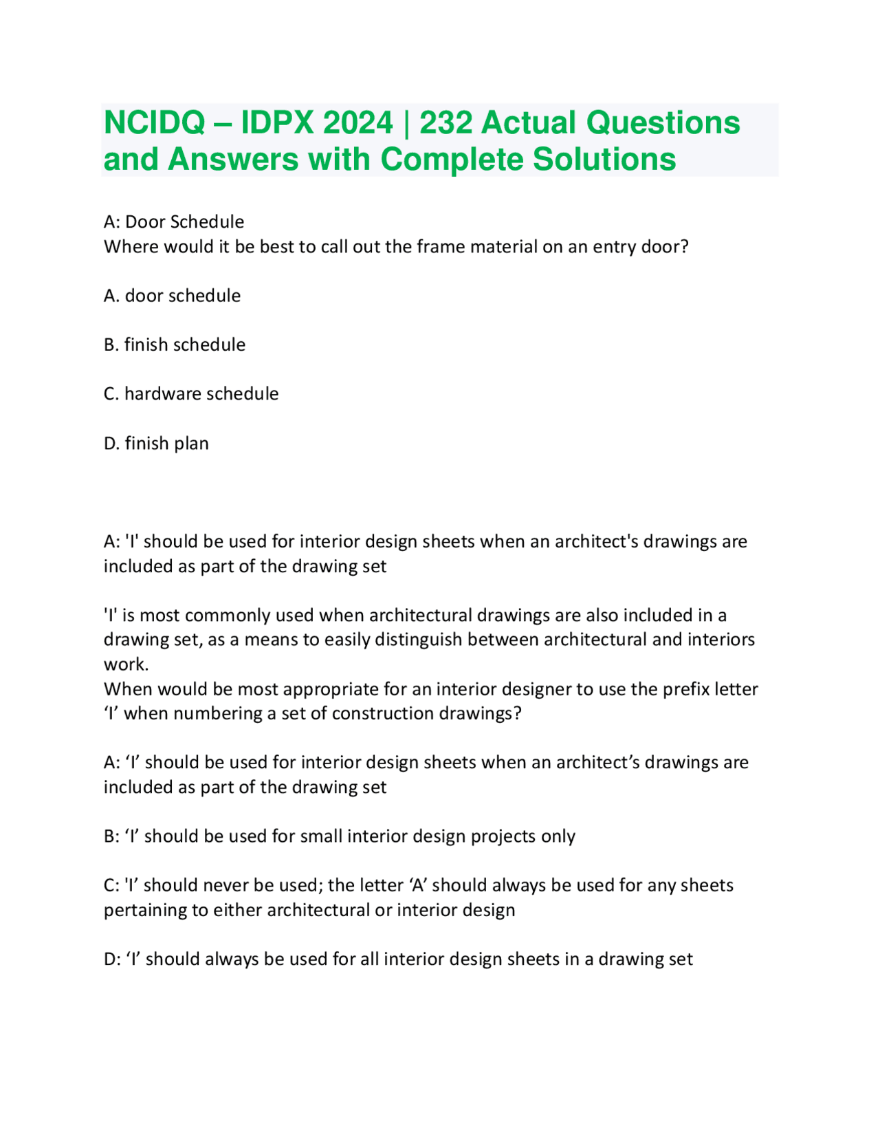 NCIDQ IDPX 2024: 232 Actual Questions and Answers with Complete ...