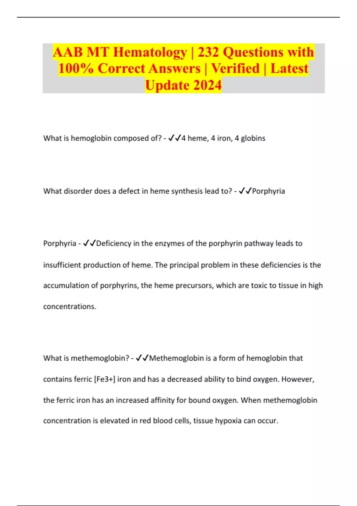 AAB MT Hematology | 232 Questions with 100% Correct Answers | Verified ...