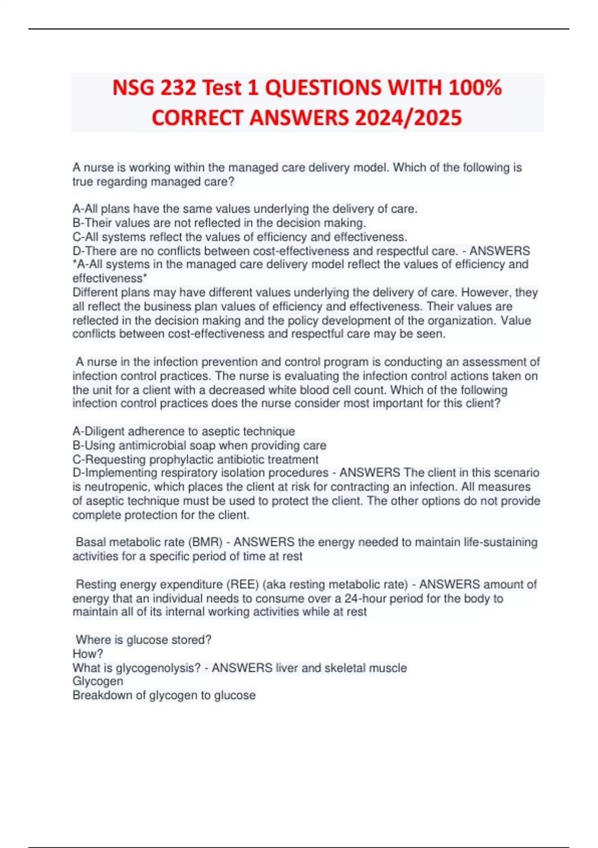 NSG 232 Test 1 QUESTIONS WITH 100% CORRECT ANSWERS 2024/2025 - NSG ...