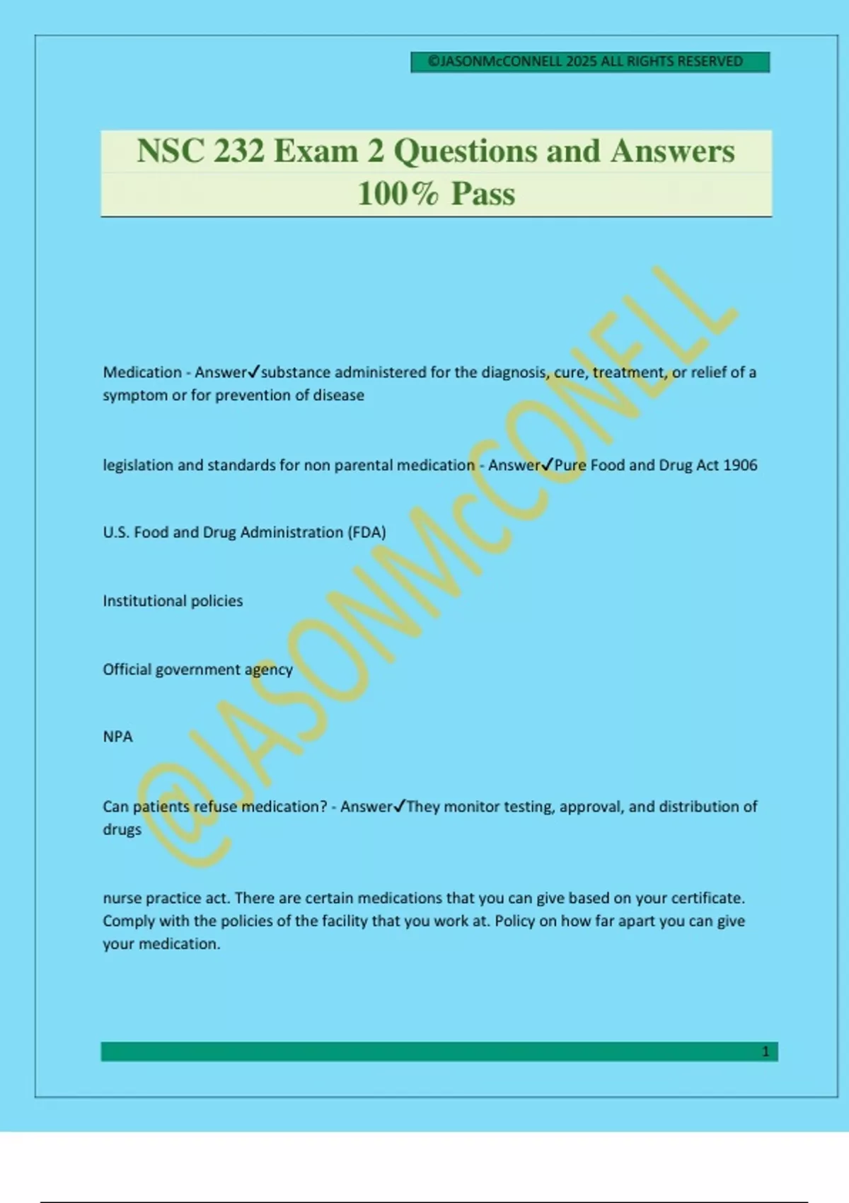 NSC 232 Exam 2 Questions and Answers 100% Pass - NSC 232 - Stuvia US