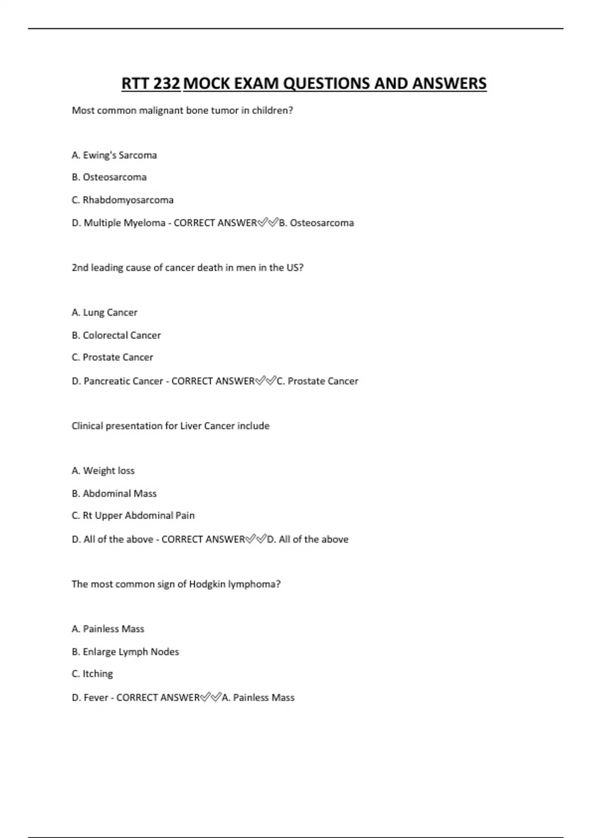 RTT 232 MOCK EXAM QUESTIONS AND ANSWERS - RTT 232 - Stuvia US