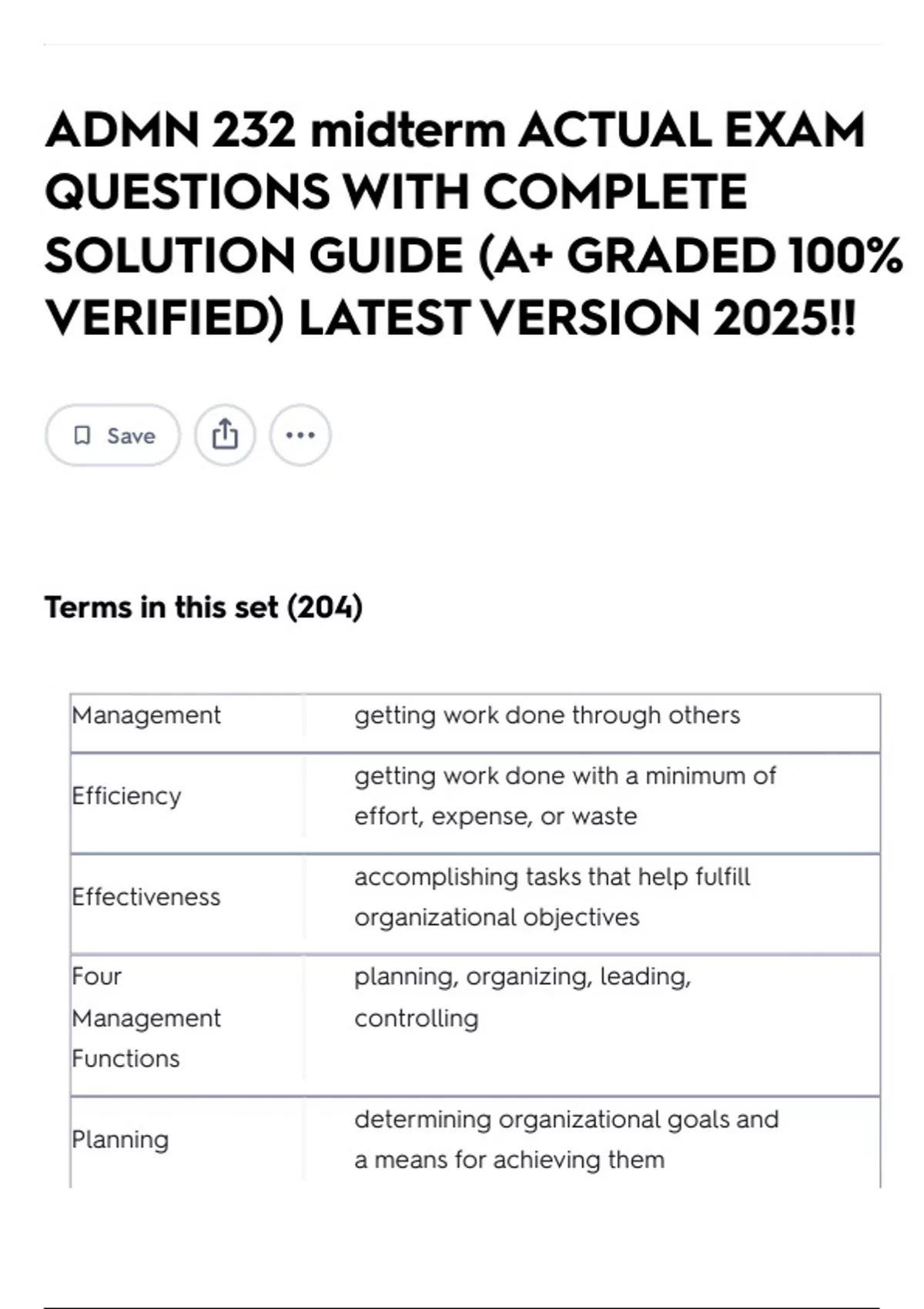ADMN 232 midterm ACTUAL EXAM QUESTIONS WITH COMPLETE SOLUTION GUIDE (A+ ...