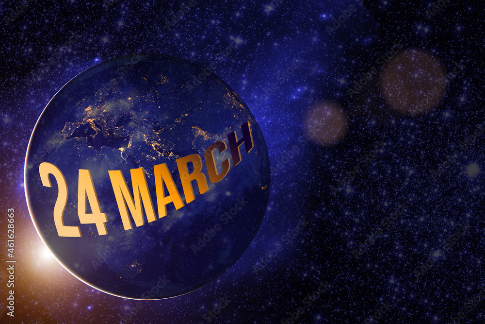 March 24th. Day 24 of month, Calendar date. Earth globe planet with ...