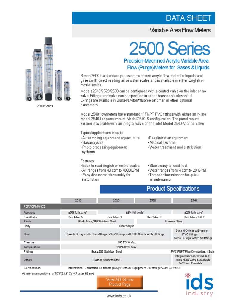 2500 Series Data Sheet | PDF | Valve | Flow Measurement
