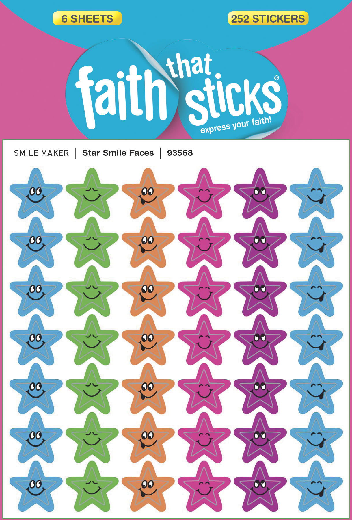 Star Smile Faces (6 Sheets, 252 Stickers) (Stickers Faith That Sticks ...