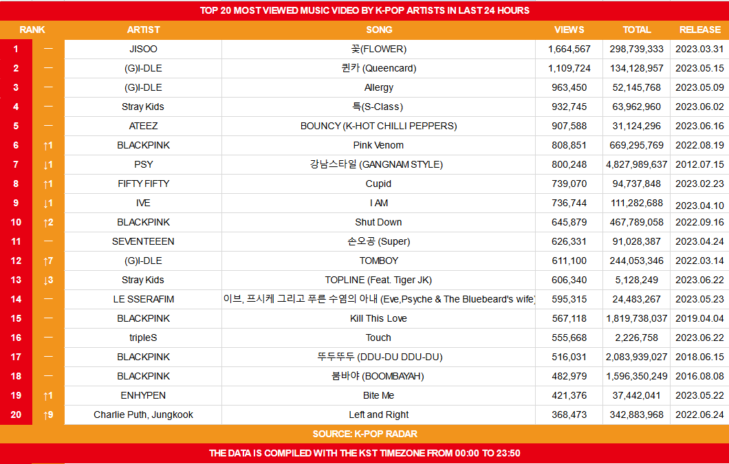 아이들 Updates on Twitter: "RT @koreansales_twt: Top 20 Most Viewed Music ...