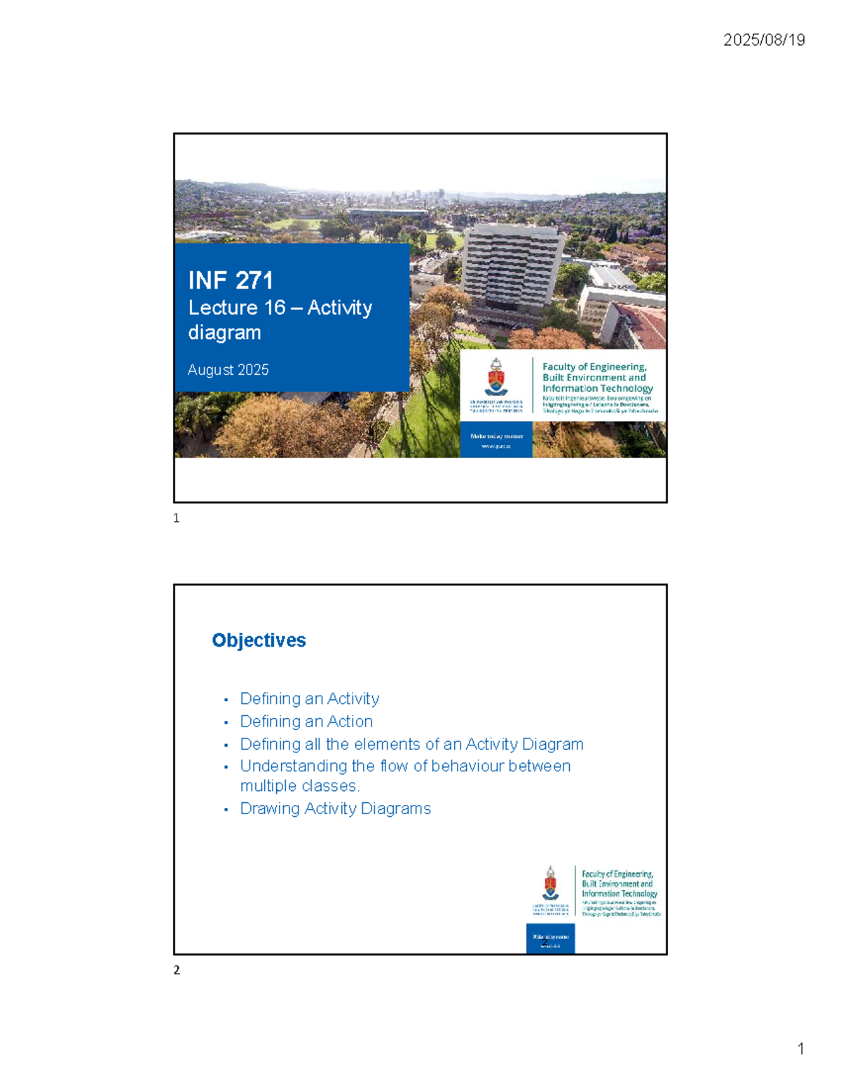 INF 271 Lecture 16: Activity Diagrams - Concepts and Examples - Studocu