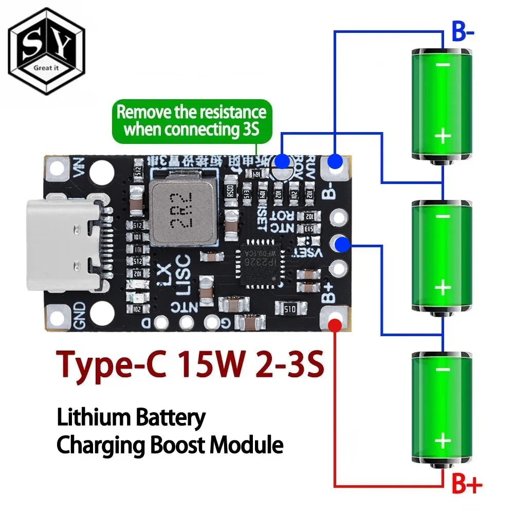 Battery Charging Module 3S 1A Board Type-C Step-Up Boost Module 18650 ...