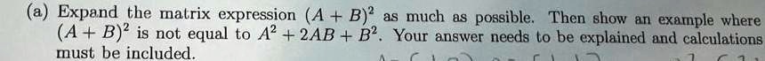 SOLVED: (a) Expand the matrix expression (A + B)? as much posgible ...