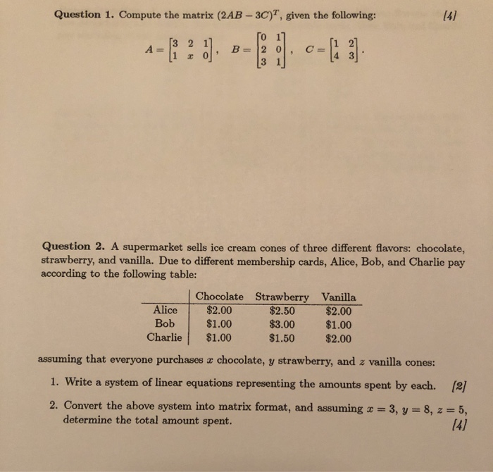 Solved Question 1. Compute the matrix (2AB - 3C), given the | Chegg.com