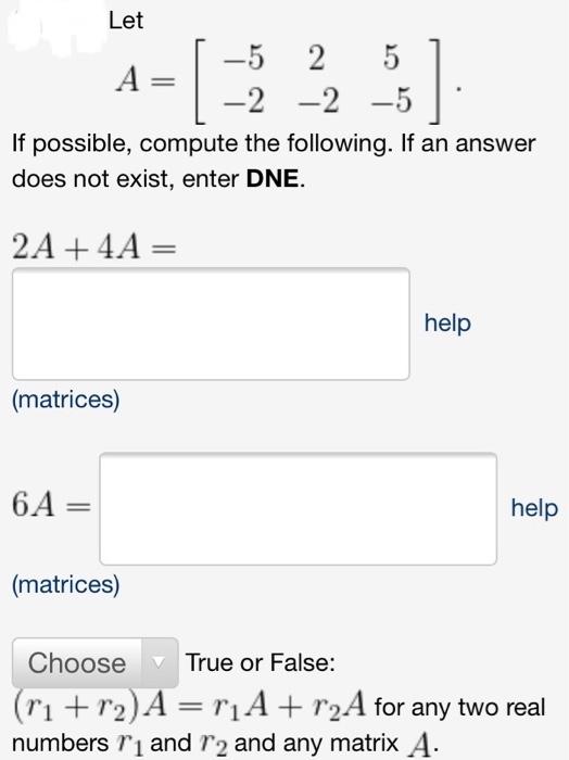 Solved Verify 2(A+B) = 2A + 2B for the following matrices. 1 | Chegg.com