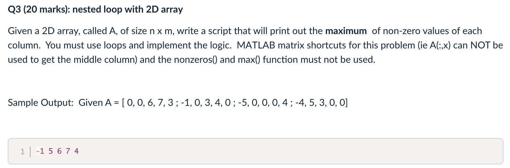 Solved Q3 (20 marks): nested loop with 2D array Given a 2D | Chegg.com