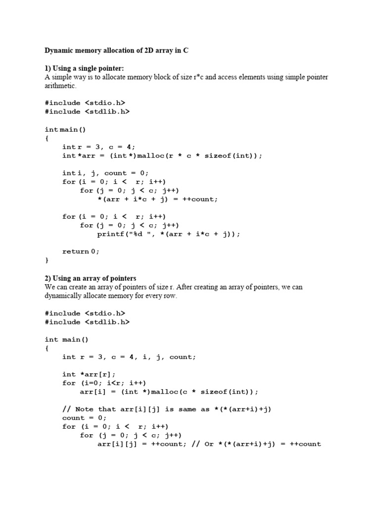 Dynamic Memory Allocation of 2D Array in C | PDF | Pointer (Computer ...