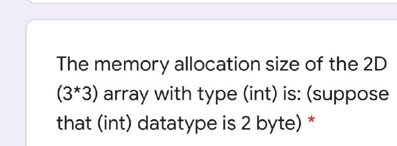 Solved The memory allocation size of the 2D (3*3) array with | Chegg.com