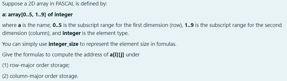 Solved Suppose a 2D array in PASCAL is defined by: a: | Chegg.com