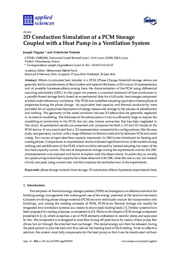 2D Conduction Simulation of a PCM Storage Coupled with a Heat Pump in a ...