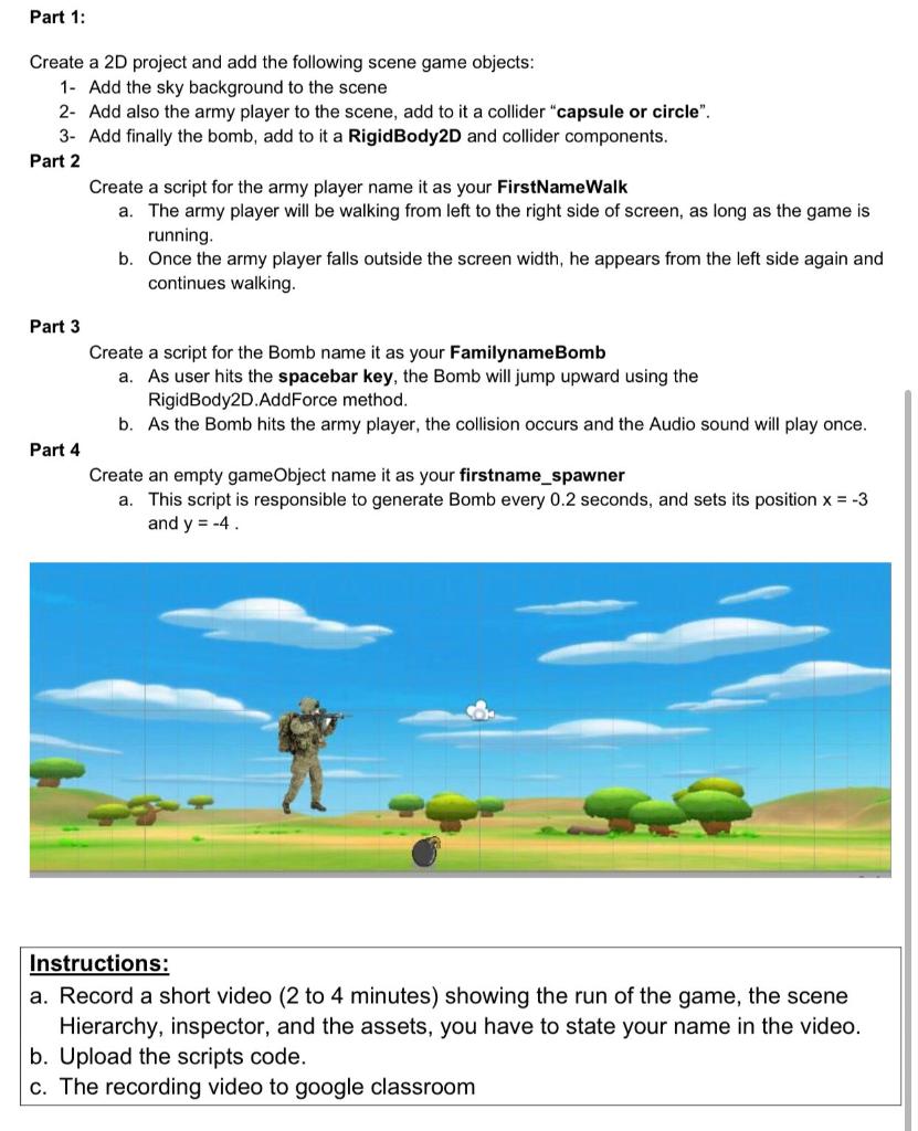 Part 1: Create a 2D project and add the following | Chegg.com