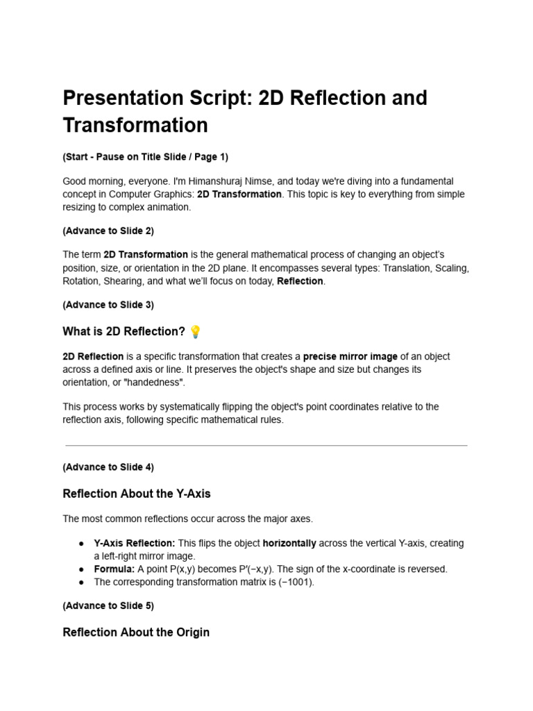 Presentation Script - 2D Reflection and Transformation | PDF ...