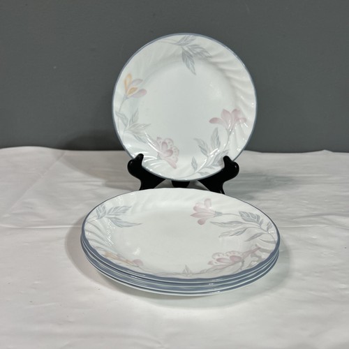 Corelle Pink Trio Bread Dessert Plates Set 5 Vtg 7 1/4” Blue Rim 2d ...